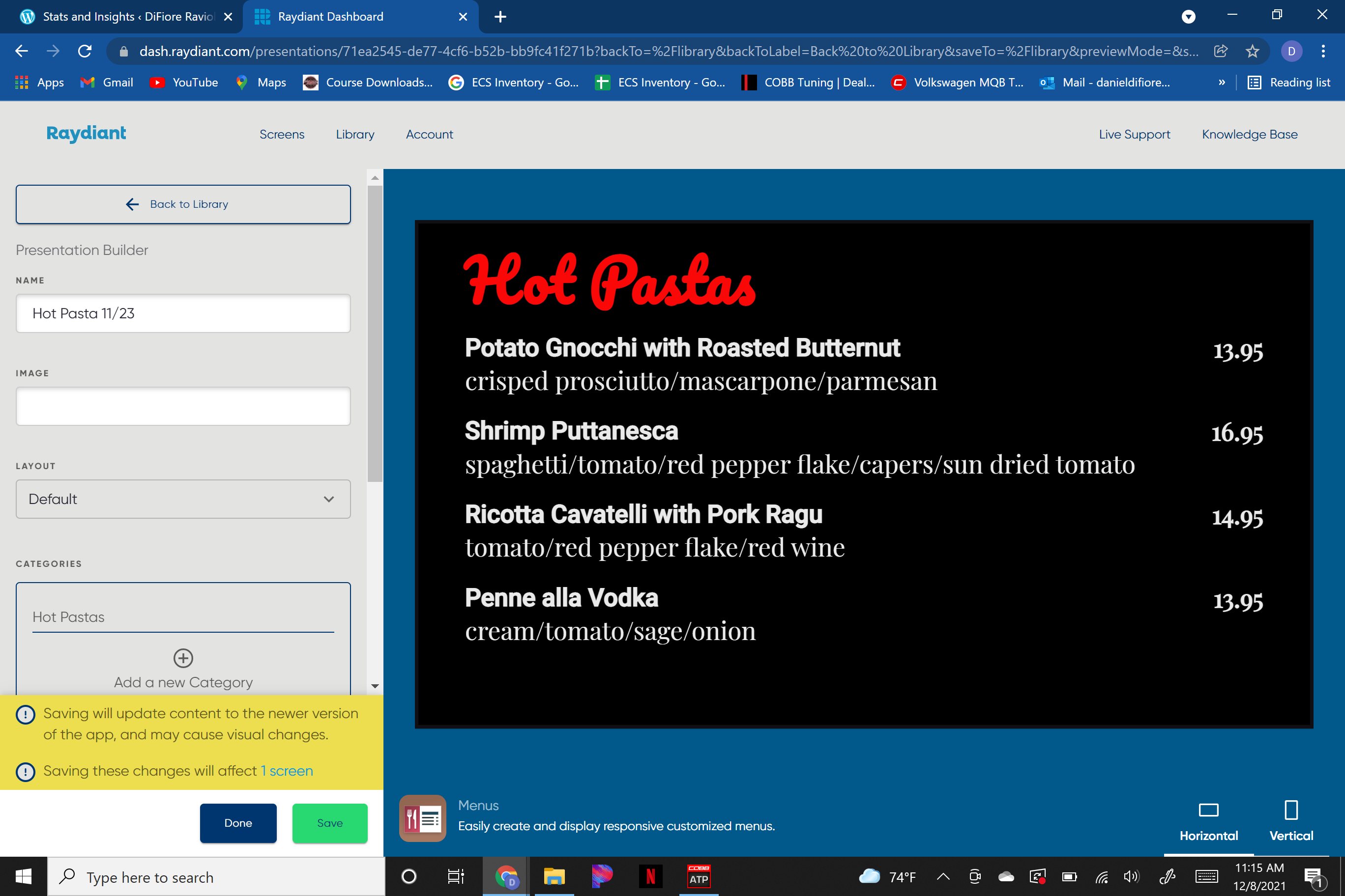 • Holiday Menu Additions