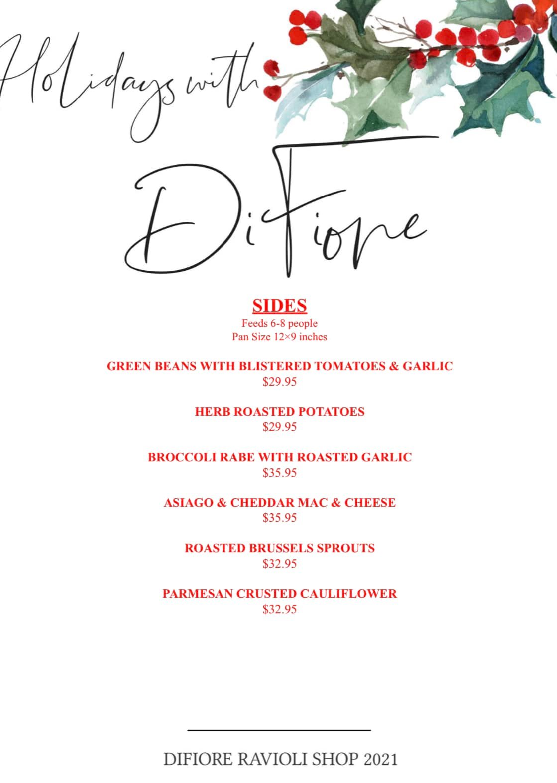 • Holiday Menu Additions